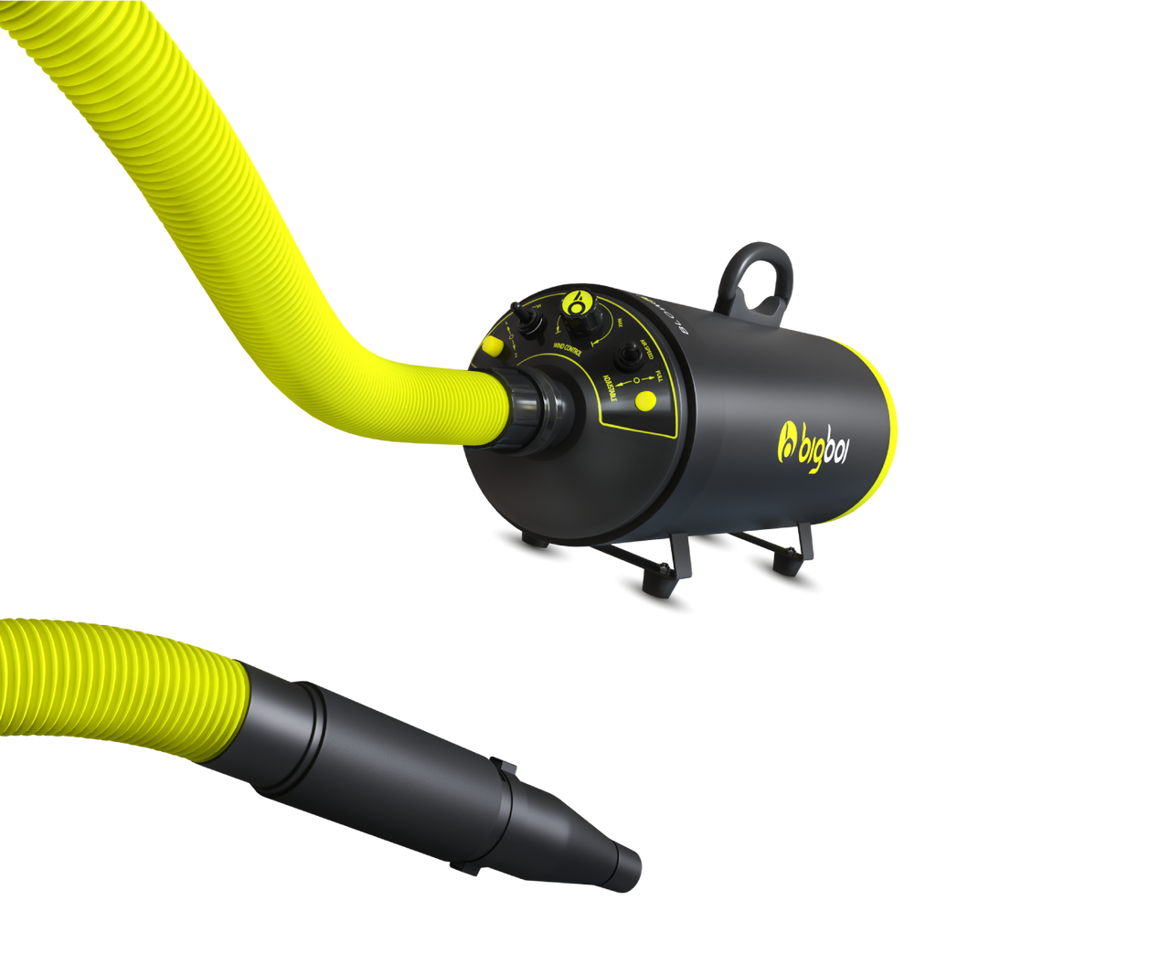 The Bigboi Mini PLUS, Built with a twin 1200 W motor, 250km/h of airflow, robust metal housing, and comes complete with a commercial grade 5 meter hose; this unit is a step up from the renowned BlowR Mini dryer. This unit shares the same accessories as the BlowR Mini, so you can also adapt the vacuum attachment to use it as a vacuum cleaner/blower. Mounts and accessories are also shared.