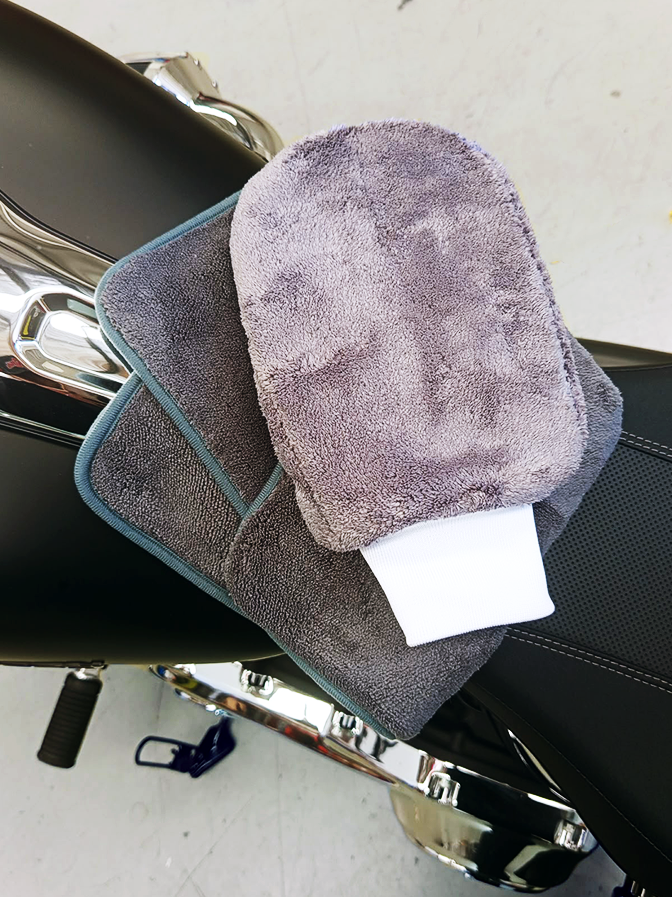 Made with ultra-soft, short-pile microfibre, it glides smoothly over paint, chrome, and plastic surfaces — safely lifting dirt while reducing the risk of swirls or scratches. The short fibres are specially designed to avoid snagging on bolts or emblems, making it ideal for detailed motorbike work where precision matters most.