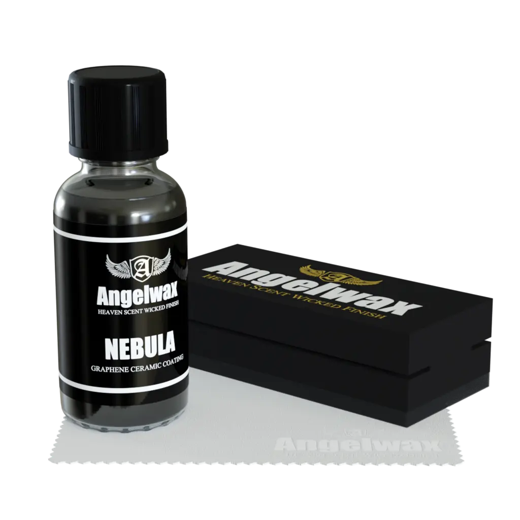 NEBULA from Angelwax is a state-of-the-art graphene ceramic coating that has been researched, developed, and manufactured in our laboratory at our UK headquarters in Scotland. This super durable professional use coating will last up to five years and has been designed to be applied quickly and easily and will leave the treated surface with a super wet look finish. NEBULA will also resist water spotting and has been formulated to be very low maintenance with less surface contact required when drying.